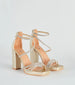 You'll be in glam mode with these gorg metallic platform heels that will level up your look! They feature an open square-shaped toe. an asymmetric strappy design with mini rhinestone embellishments. a closed back with a zipper. a platform sole. and a tall block heel. Style with a party dress.