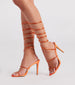 Step out into a glam scene in these striking stiletto heels for a night on the town! They feature a square toe. dual thin foot straps. and a spiral ankle strap with colored mini rhinestones on satin material. Complete the look with a glitter clutch.