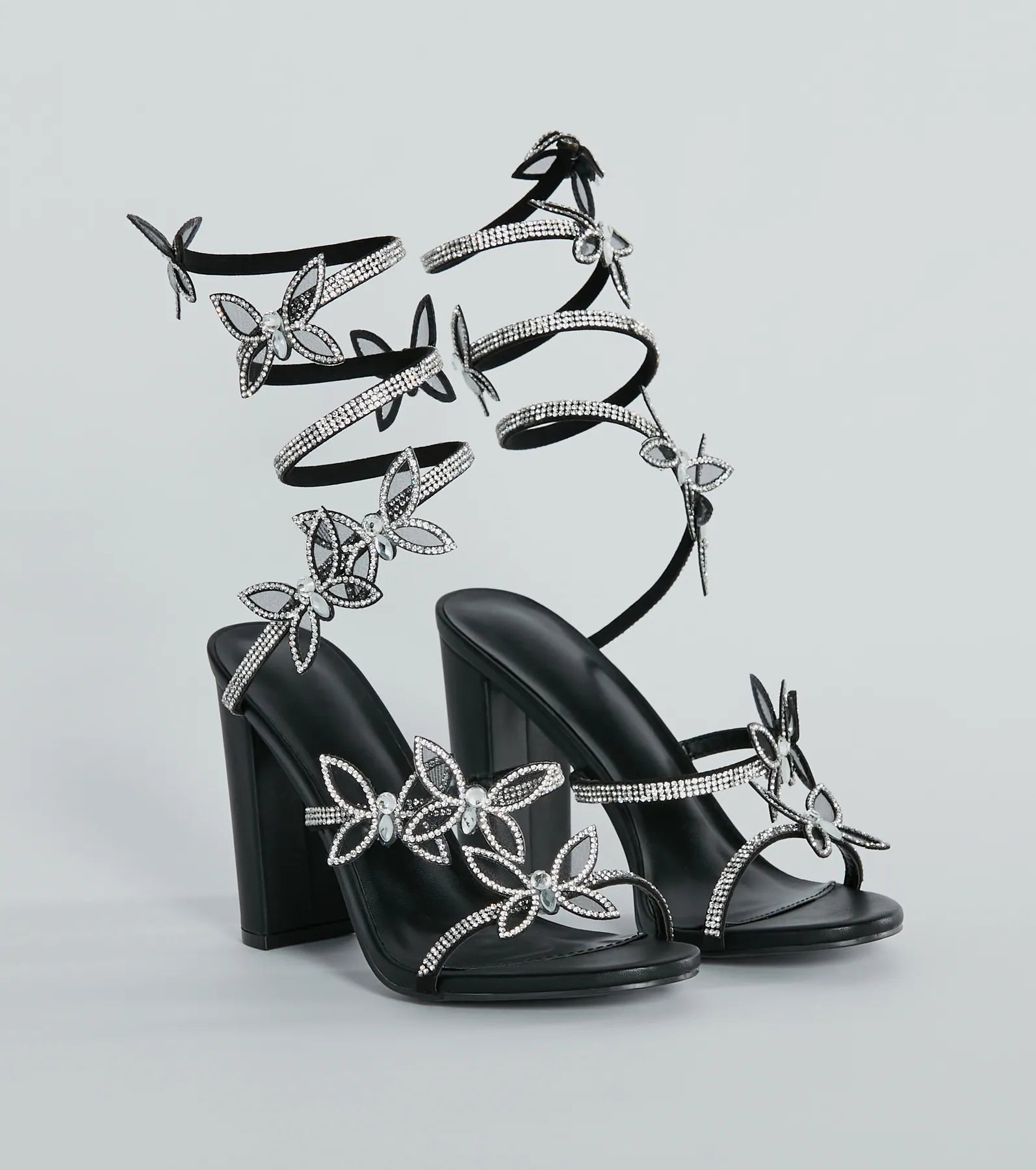 Glamour Butterfly Rhinestone Spiral Block Heels
