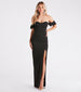 Enjoy the perfect evening in the Glinda formal crepe long dress to bring a sophisticated allure to black-tie events or parties! She features a classy off-the-shoulder. sweetheart neckline with non-slip grip lining and adorable puff sleeve cuffs. Flaunt your curves thanks to her form-hugging slim silhouette that's also designed with a high front slit to show some on the long hem. The formal dress is composed of a crepe fabric with a stretchy knit lining. Complete the look in chandelier fringe earrings for a glam finish!
