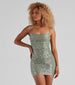 Glisten and glow girl! Strike up your inner sparkle in this sequin mini dress featuring a sleeveless. cowl neck. adjustable spaghetti straps. and a sleek bodycon silhouette. Complete the look in statement earrings.