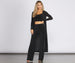 Add a glittering touch to your night! Designed with long sleeves. and a long hemline that reaches ankle length. this duster is a glam way to amp up your look! Composed of a glitter knit mesh material that offers moderate stretch. Complete your look with the matching crop top and wide leg pants!