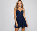 Showcase a glitzy and girly vibe in this sweet glitter knit skater dress. It features a sleeveless wired V-neckline. spaghetti straps. a high waist. and a flirty skater skirt with a fit and flare silhouette. Style this dress with platform heels.