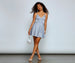 You'll look oh-so-glitzy and gorgeous in this flirty glitter knit skater dress! It features a sleeveless V-neckline. dual spaghetti straps that lead to a cross-back strap design. and a short skater skirt with a fit and flare silhouette. Style this glamorous dress with rhinestone statement earrings and embellished heels.