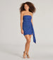 Glitz and glow in this glitter mini dress boasting a strapless neckline and a wrap bodycon fit that makes your curves shine. Complete the look with block heels.