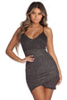 The glow is real in this sparkly glitter dress! It features a flattering V neckline with padded cups. spaghetti straps that cross at the back. a high waist seam. a short. tulip hem. and a curve-hugging silhouette. Pair this dress with a gorgeous rhinestone necklace for a stunning night out look.
