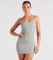 It may be dreary during the day but at night is when your glow-up happens! Bring the shine in this glitter mini dress featuring a sleeveless square neck. bungee spaghetti straps that shape the open back with lattice straps. and a bodycon silhouette on crepe knit fabric. Complete the look in sassy platform heels.