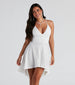 Go with the flow in this pretty high-low dress that is perf for those casual lunch dates! The dress features a sleeveless V-neckline. spaghetti straps. a sheer delicate floral lace back with a large keyhole cutout. and a high-low silhouette perfect for flaunting chic heels. The dress is composed of a crepe fabric that offers a moderate stretch with a fit and flare silhouette. Complete look with clear mules.