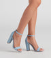 These faux suede block heels will go with everything in your fashion closet! They feature an almond toe. thin toe. and ankle buckle strap on a closed ankle accent. Complete the look in a stylish dress and crop sweater for a girl's brunch.