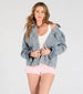 Layer on this oversized trucker denim jacket for the cutest look with a crop top and frilly shorts!