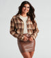 What can we say? It feels good to be in this plaid crop top for fall! It features long sleeves with button cuffs. a collar neckline. button-up front closures. and a relaxed fit on lightweight woven fabric. Complete your trendy look in a mini skirt for the perf ootd!