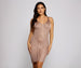You'll look like a total gorgeous goddess in this sultry metallic mini dress! It features a sleeveless V-neckline. thin shoulder straps. a backless design. a mini-length. curve-hugging silhouette. and a metallic sweater knit fabric with center seam detailing down the front. Style this dress with gold hoop earrings and clear heels for a sexy summer look.