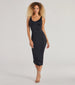 Flaunt your gorgeous figure in this midi dress designed with smooth nylon fabric offering plenty of stretch. It features a sleeveless scoop neck and back design. tank straps. and a midi-length bodycon silhouette to showcase your curves.