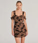 Gorgeously Chic Flocked Floral Cold-Shoulder Mini Dress