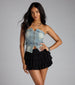 Elevate your fashion muse with this denim crop top! Designed with a button front detail that adds a touch of vintage charm. while the fitted crop hem with center split shows some skin.