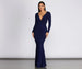 Wow them all with our dazzling Graceann dress! She features a plunging V neckline with a knotted detail. a long fitted sleeves. a single button closure at the nape of the neck and an open back. Her relaxed fit bodice leads to a sweeping floor length silhouette. Dress is composed of a lined glitter mesh fabric that offers a form hugging fit with a moderate stretch.
