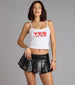 This faux leather pleated mini skort amps up the edge with grommet trim detailing—made for night-out looks. concerts. or whenever you're in the mood to turn it up.