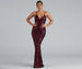 Let our beautiful Gwendolyn do all the talking this prom season! Her stunning sequins and gorgeous silhouette are enough to spark a conversation everywhere you go. She features a sleeveless wired deep V-neckline with a padded bust. dual adjustable spaghetti straps that lead to a cross-back design. and a floor-length. form-hugging fit. The lined mesh fabric features all-over sequin embroidery in a chic scroll pattern. Complete your prom look with rhinestone earrings.