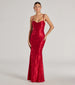 Bring the charm in a long lace dress that features a sleeveless cowl neckline. adjustable spaghetti straps. an open-back design accented with a bar back. a floral lace pattern. and a mermaid silhouette. Complete the look with a sleek rhinestone clutch for the perfect wedding guest outfit.Â