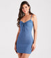 You'll be happily in love with how stunning you look in this sleeveless mini dress for a graduation or birthday brunch! It features a scoop neck with a flirty bust tie. spaghetti straps. and a bodycon silhouette on rib knit fabric with a stretchy knit lining. Complete the look in trendy wedges.