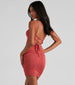 Say hello to your new fave mini dress for day-to-night soirees! Featuring a sleeveless. square neck. spaghetti straps. high waist seam. side ruched seams. and an open-back with lace-up closure. Composed of brushed soft and stretchy knit fabric that hugs your curves like an hourglass. Finish the look in a sleek cropped jacket.