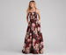 Flaunt your florals in the stunning Hayde ball gown at prom! She's designed with side pockets for keeping your hands warm in between dancing and taking amazing prom pics. Her sleeveless boat neck features a built-in padded bust and adjustable spaghetti straps that shape the open-back lace-up detail perfect for showcasing some skin. She has a structured bodice with flexible boning inserts. a high-waist seam. and pleats along her A-line silhouette. The ball gown is composed of a floral printed woven fabric with multi-layers for a voluminous effect. Complete the look in statement earrings.
