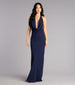 Soft. sculpted. and made for a slow-motion entrance. the Hayley gown drapes in airy chiffon that moves beautifully with every step. The halter cowl plunge neckline and open back with an adjustable strap bring a refined allure to its curve-hugging floor-length silhouette—perfect for nights when you want to look effortlessly unforgettable.