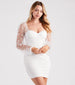 Step out making hearts flutter in this crepe mini dress to bring the whimsical charm to rehearsal dinners. graduations. and dressy birthdays! Featuring a sweetheart neck. a built-in padded bust with underwire. sheer mesh peasant sleeves adorned with a flocked velvet butterfly pattern. and a bodycon silhouette. Complete the look in pretty lace-up heels and a ring set.
