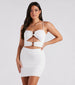 Heat things up in this showstopping bodycon mini dress on vacation or at a summer party! It features a sweetheart neckline. spaghetti straps that crisscross in the back. dual front center O-ring inserts and cutout accents. side ruched seams. and a fitted hem. Complete the look with geo-shaped earrings and a layered necklace.