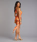 Made for golden hour and beyond. This abstract print mesh ruffle mini dress hugs in all the right places with a stunning drape that's equal parts dreamy and daring.