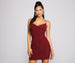 Make a sparkling moment in the shimmering Avery dress that draws all eyes on you! She features a sleeveless cowl neck. sleek bungee cord straps that lead to an x-back design. sparkling heat stones throughout. and a mini length hem. complete look with rhinestone door knocker earrings and sleek heels.