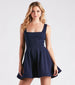 Twirl all night in the flirty Helen crepe party dress at school dances. birthdays. or banquets! She features a sleeveless square neckline. tank shoulder straps. an eye-catching lace-up back with tie closure. hidden side pockets for keeping your hands warm. and a flattering skater silhouette with a short-length bonded hem. The party dress is composed of a crepe knit fabric with a bust lining and plenty of stretch. Complete the look in this short skater dress with strappy block heels.