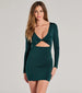 Step up your night-out vibe and stun in this smooth knit mini dress featuring a plunging V-neckline with a twist-front bust design and a sultry keyhole cutout at the waist. The bodycon silhouette will flaunt your gorgeous curves.