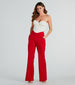 Crepe trouser pants for making power moves in and out of the office! They feature a high-rise waist. front pockets. a hip-hugging fit. and a trendy wide-leg silhouette. The crepe fabric offers a moderate stretch. Perf for styling from the office to happy hour. pair with a cropped blouse and chic mules.