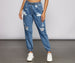 Part edgy. part casual. these joggers are perfect to throw on with your basic tops! The joggers feature a high-rise elastic waist with drawstring. slant pockets. destructed detailing. cargo pockets with snap button closure. a straight leg fit with an elastic hem. The joggers are composed of a denim fabric that offers a relaxed fit with slight stretch.