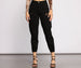 Keep it casual in cargo joggers that nail that effortlessly put-together look. The denim joggers feature a high rise waist. heavy destructed detail. cargo-styled pockets. and cropped hem with elastic cuff. Complete your look with a crop top and chunky sneakers.