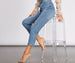Straight leg jeans are taking over! This high rise pair is sooo cute with its destructed detailing.