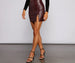 Bring the drama with this stunning mini skirt! The skirt features a high rise waist and a mini length silhouette with a side slit. The skirt is composed of a faux leather fabric that offers a form-hugging fit. Complete your look with a crop top and heels.