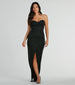 The Hilary rhinestone strap slit glitter formal dress will be a favorable sensation for extra special black tie galas or events! She's a stunning dress designed with a sweetheart neckline and rhinestone embellished straps for sparkle and a sultry form-hugging silhouette. The high front wrap slit adds a touch of sensuality. while the glitter fabric exudes sophistication at any party. Complete the look with statement earrings and heels.