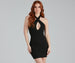 All you need is a hint of glitter to shine at every party! Spotlight on you in this halter mini dress featuring sleeveless. cross straps. a sexy front cutout. and an open back on a bodycon silhouette. Complete the look in rhinestone heels.