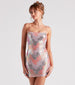 Cheers to you looking dazzling in this sequin mini dress destined to be the hit at the club! It features a sleeveless square neck. bungee spaghetti straps. an open strappy back design. a bodycon silhouette. and multi-colored sequins. Style with bracelets to complete the look.