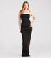 You'll be a vision in the Holly formal dress at fancy dinners and celebrations! She features a sleeveless square neckline. adjustable spaghetti straps. a sultry open tie-back design. and flattering side and back ruched seams that accentuate your curves and a slim long silhouette with a high side slit to show some leg. The formal dress is composed of a smooth knit fabric with a stretchy lining. Complete the look with a glam hair accessory and clutch.