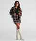 This layer-ready plaid shacket is essential for building your perfect fall wardrobe! The crop shacket features long sleeves with buttoned cuffs. a collar neckline. button-down closures. flap pockets. and a trendy oversized fit. Complete the look in the matching skirt.
