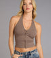 Serving casual with a side of edge—this halter tank top knows the vibe. Stretchy ribbed knit keeps it comfy. so you can wear it from chill hangs to going-out vibes.
