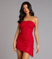 Turn up the heat—this strapless glitter mini dress hugs every curve with sleek ruching and a side drawstring hem you can adjust to your vibe. Perfect for nights when subtle just isn't on the agenda.