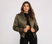 Show em' all how you roll out with the squad! The jacket features a ribbed neckline. a zippered front. long sleeves with ribbed cuffs. and buttoned side pockets. The jacket is composed of a satin-like fabric that offers a form-hugging fit. Complete look with a bodysuit and black skinny jeans.