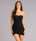 Made for the nights when subtle isn't the assignment. The Abbey mini dress glows in allover rhinestone detailing that catches every flash and glance. With its strapless neckline. built-in underwire padded bust. and sleek bodycon mini silhouette. it delivers that effortlessly polished. look-at-me moment she's dressing for.