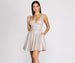 You'll be captivating everyone as you twirl around in our gorgeous Hyla! Her never-ending sparkle is a magnet for attention. while her skater skirt adds dimension and flow as you dance around. Style her up with a glitzy envelope clutch and a pair of earrings to match!