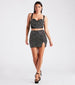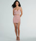 Glitz and gleam and showcase iconic glamour in this embellished mini skirt! It features a high-rise waist. all-over sparkling rhinestone and faux pearl embellishments. a mini-length hem. and a curve-hugging fit. Complete your night-out vibe with the matching bustier top!