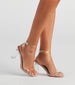 Things will get a little icy up in here! Strut your catwalk in these lucite block heels featuring a sleek square toe. PVC toe. and ankle strap with adjustable buckle closure and a thin clear heel. Complete the look with a gorgeous clutch purse.